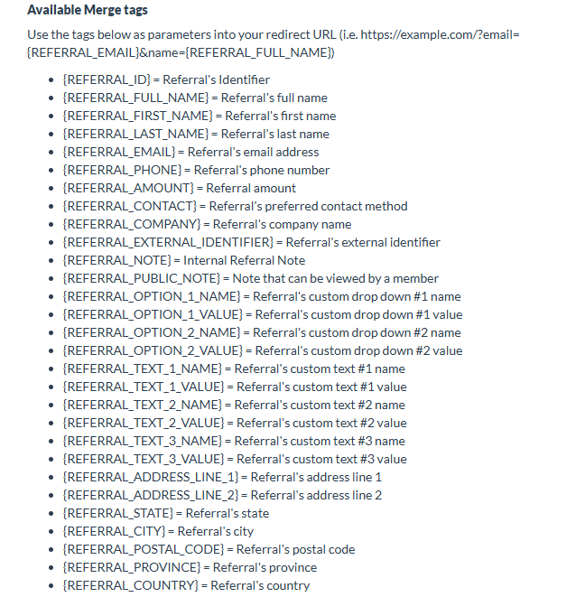 You can also add Referral Merge Tags from Referral Rock so that you can pass referral information on to your final redirect URL.